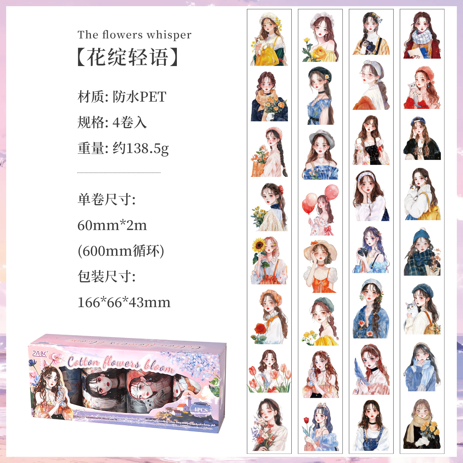 4 rolls of Korean girls' PET tape set, 2.36*78.74 inches